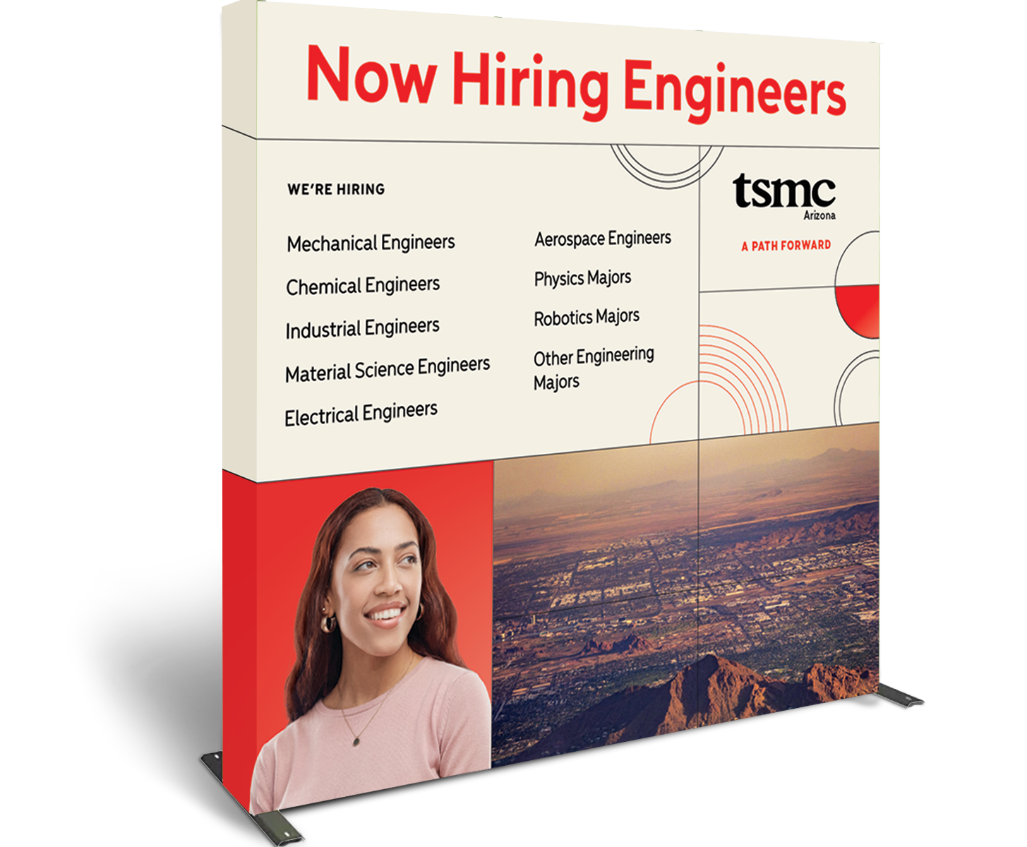 TSMC Arizona wanted to not only reach Engineer graduates, but also appeal to local candidates with no degree who might be working in retail, fast food, etc., and help them realize how they can begin a real professional career.